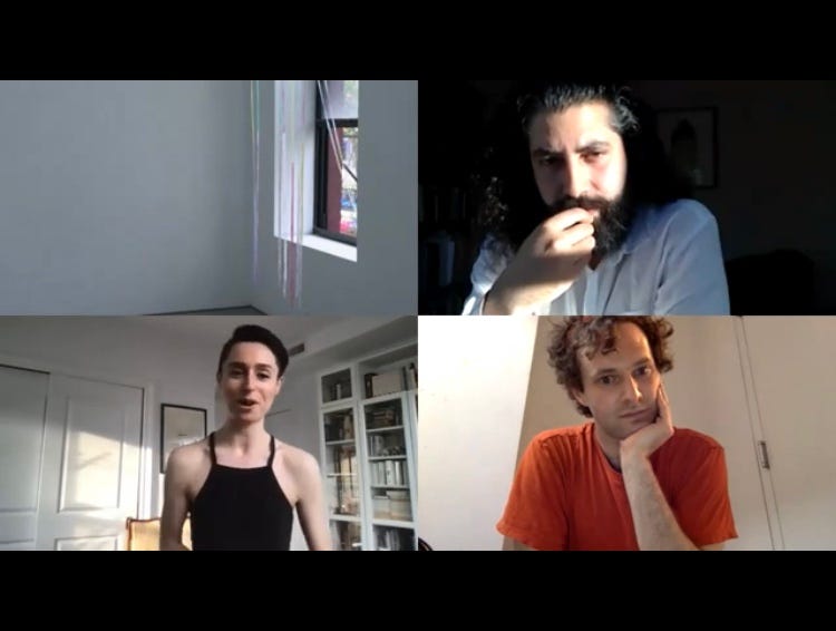 Last week, I sang and spoke in A Sound of Teaching, organized by the artist Tim Simonds as part of the closing weekend of his solo exhibition Teachers Monarchs at the Brooklyn-based Cathouse Proper. The event, which took place live over Zoom, brought me together with Houman Harouni, a practice-based theorist and professor of education at Harvard, to perform a class of sorts. Houman isn’t a professional musician - in fact, by his own admission, he doesn’t know anything about music. So this wouldn’t be that cornerstone of performative learning, the public master class, in which a singer is coached through a piece by an experienced specialist in the field. He and I had never met; we had no pre-designed lesson plan or agenda. In fact, it wasn’t even clear who would be teaching and who would be taught. I quite frankly had no idea what would happen, by design.